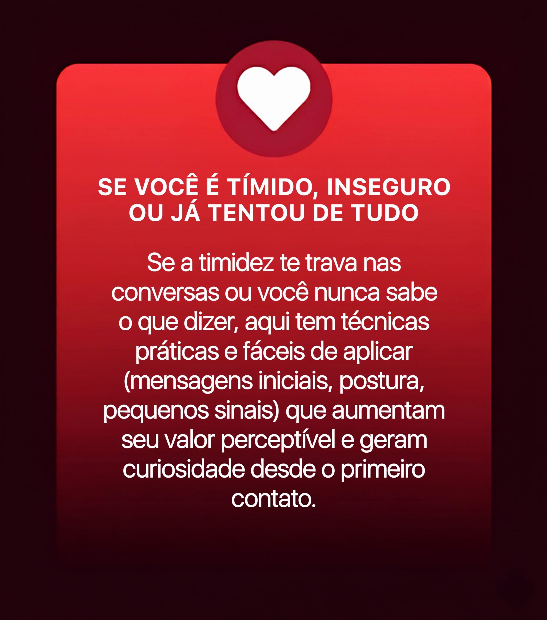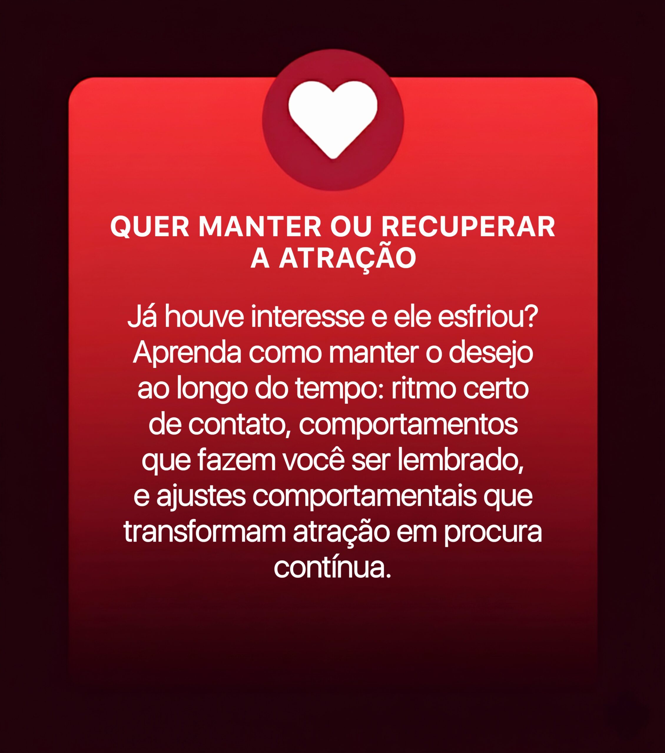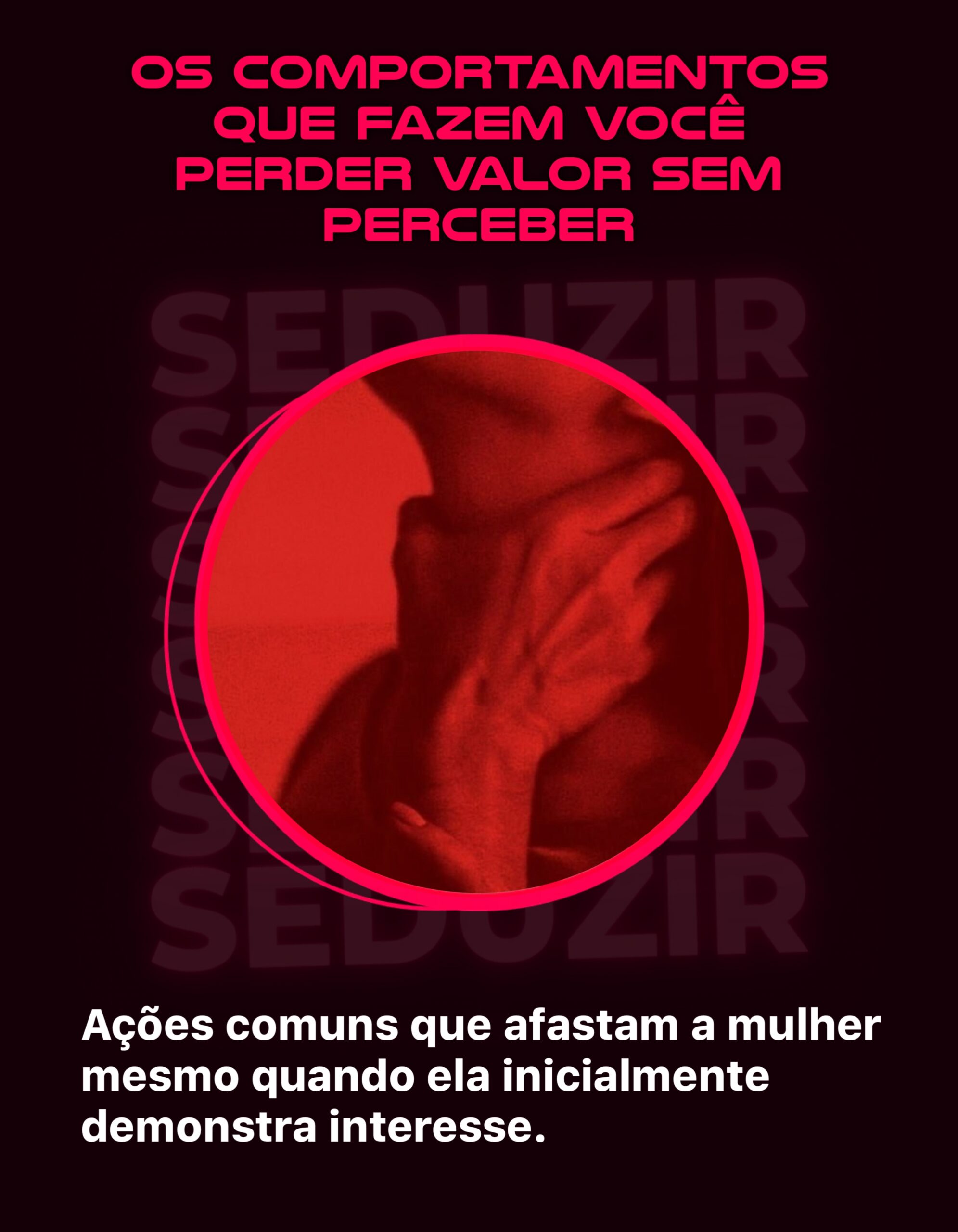 Ao navegar por nossas seções, você encontrará informações sobre os comportamentos que fazem um homem perder valor sem perceber e aprenderá como reverter essa lógica. O objetivo principal é fazer com que o interesse venha dela, através de uma mudança real de postura e mentalidade.